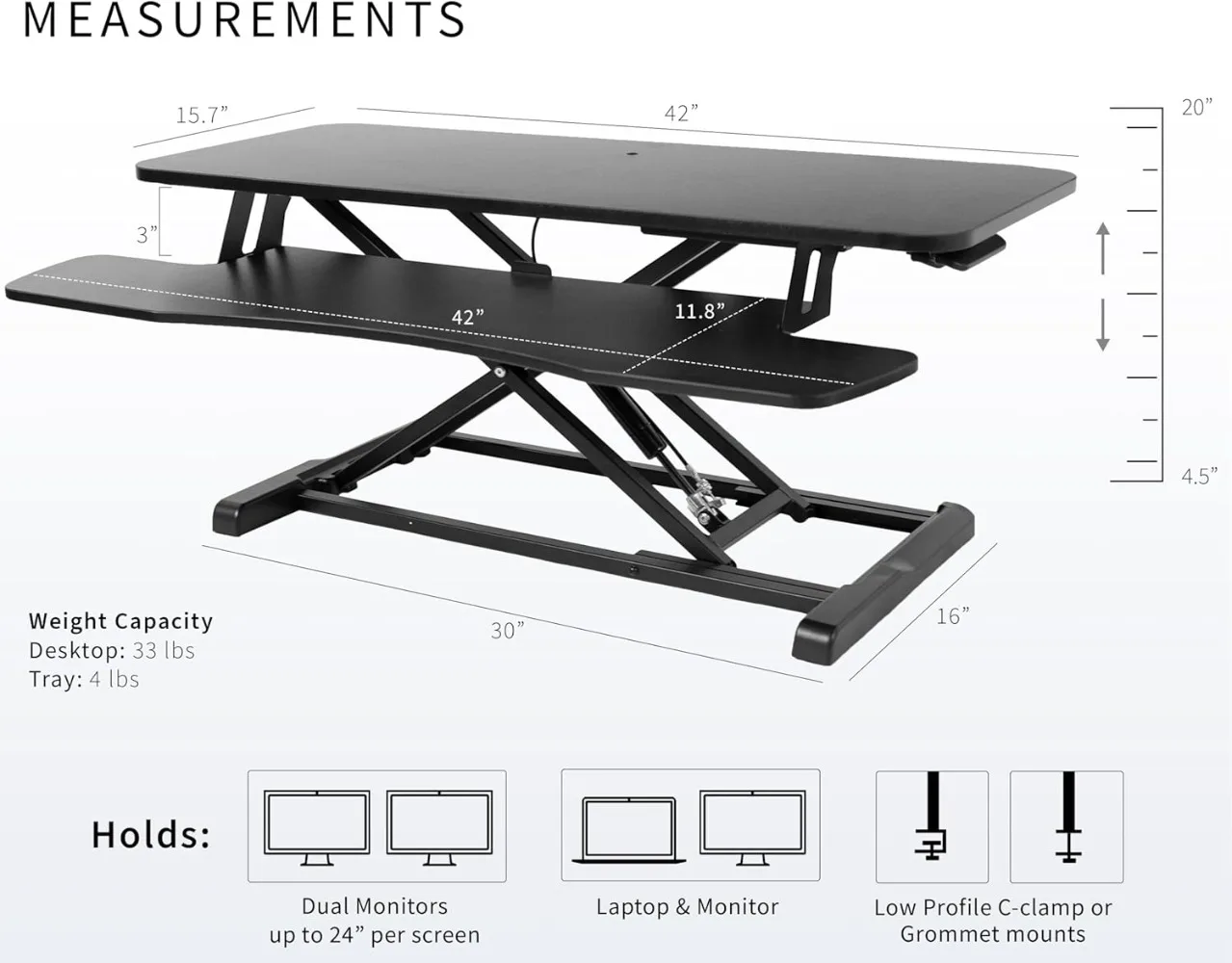 42 inch Desk Converter, K Series, Height Adjustable Sit to Stand Riser, Dual Monitor and Laptop Workstation with Keyboard Tray